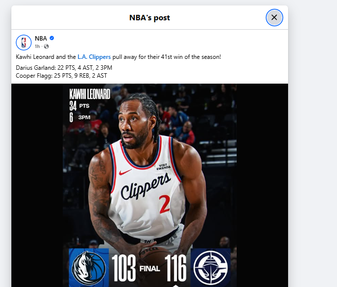 When the game was slipping, Leonard responded instantly. He scored 7 of the team’s final 11 points in the third quarter.That short burst changed the momentum again. It pushed the Clippers back into control heading into the fourth.Even though he rested late, his damage was already done. The Mavericks could not recover after that stretch.
