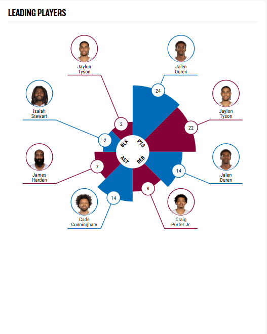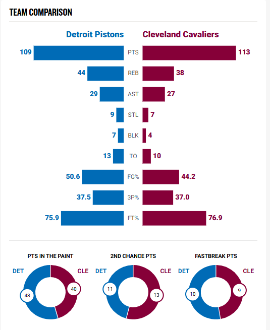For fans who want a closer look at how the Pistons and Cavaliers performed, detailed game charts show quarter-by-quarter scoring, individual player stats, and key team performance metrics. These charts highlight momentum shifts, standout plays, and how each team executed on both ends of the court.