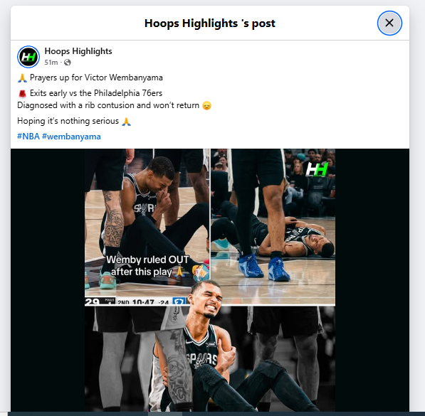 The injury is currently described as a rib contusion. There is no confirmed severity yet.However, this creates concern for upcoming games. Wembanyama must meet minutes criteria for postseason awards.